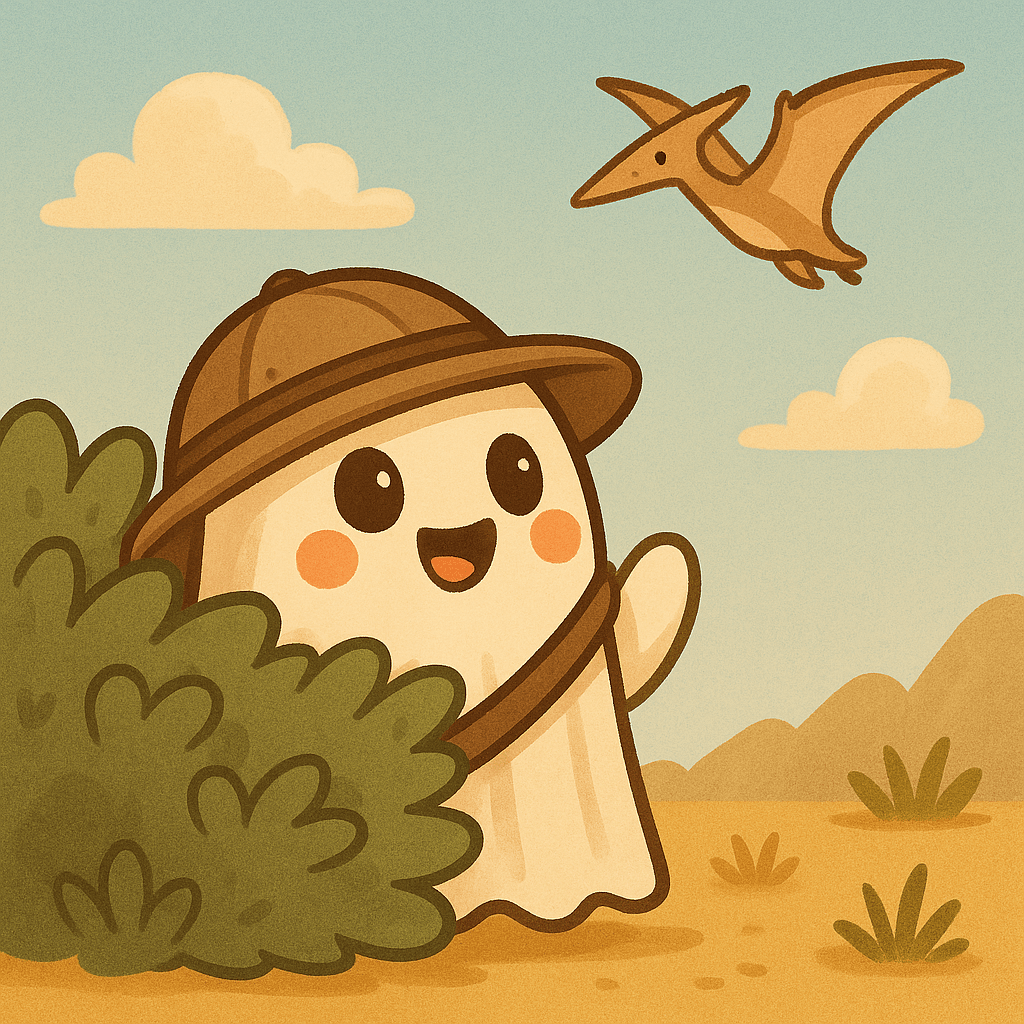 Ghostie has traveled back to the Prehistoric Ages!!! Is that a pterodactyl?!?! I wonder if it likes candy, too!