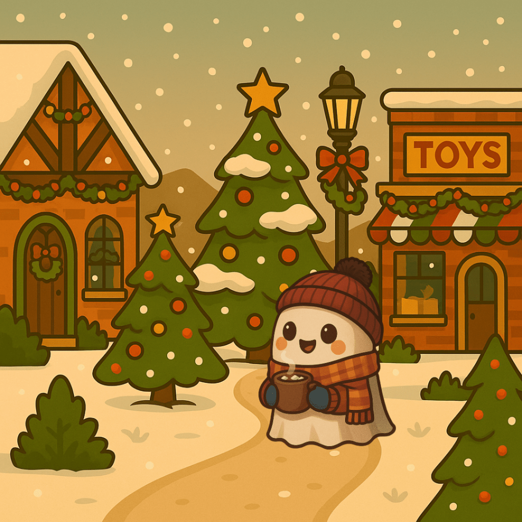 Ghostie decided to take a stroll into the town center to see all the decorations! Maybe the toy shop has some candy, too!