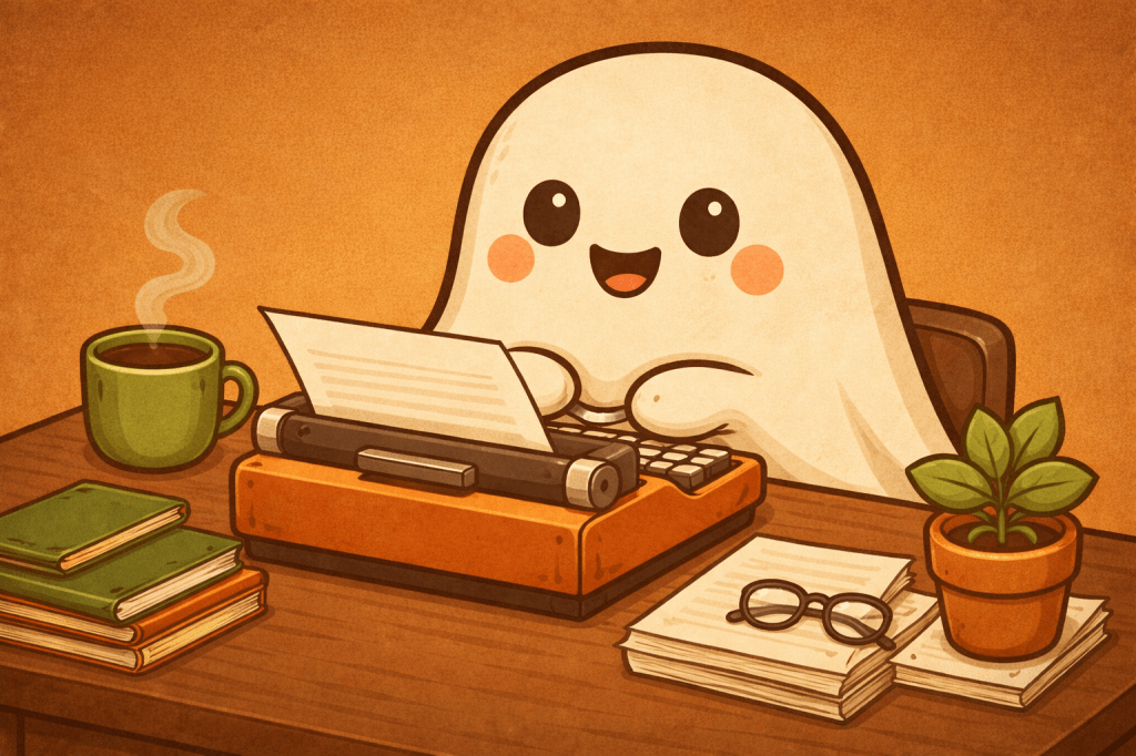 Ghostie was so excited to read! Now Ghostie wants to write! Maybe Ghostie can tell stories about all of its adventures for candy with friends!?!?!