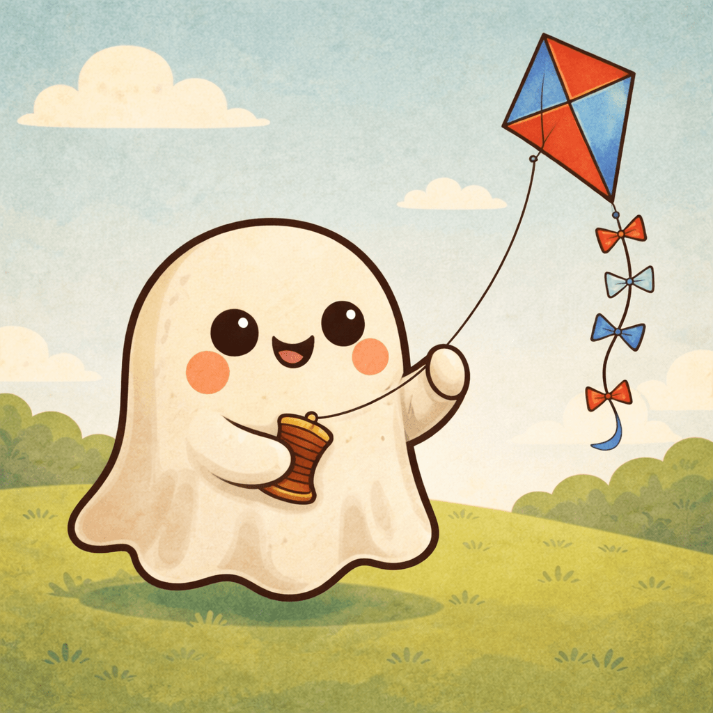Ghostie loves to go outside and fly its kite!! Sometimes Ghostie will bring out its candy-shaped kite! I wonder what candy the kite is shaped as…